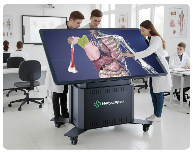 Edukacyjny Stół Anatomiczny 3D to inteligentne i interaktywne narzędzie stworzone z myślą o nowoczesnych metodach kształcenia w dziedzinie nauk medycznych.